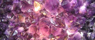 «Солнечный» аметрин с преобладанием жёлто-золотистых оттенков даёт согревающий эффект, способствует обезболиванию.
