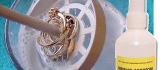 - 4Нашатырный спирт в сочетании с перекисью водорода тоже дает неплохой результат. Для этого смешайте 1 ампулу нашатырного спирта и 50 мл перекиси. Золото опустите в получившийся раствор и оставьте на 7-8 часов (можно на ночь).